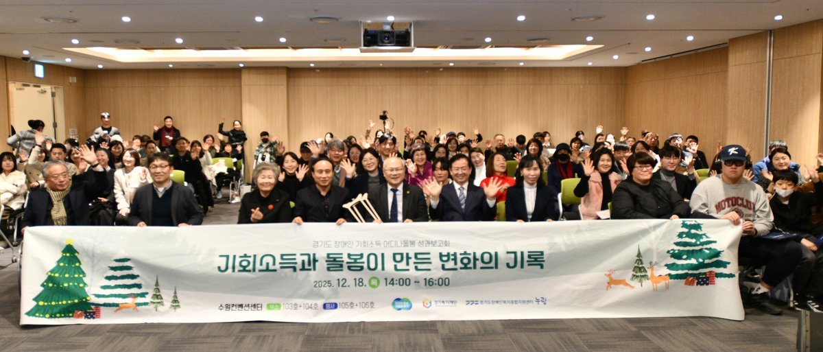 경기도는 18일 수원컨벤션센터에서 '2025년 경기도 장애인 기회소득·어디나돌봄 성과보고회'를 개최하고, 사업의 성과를 분석한 결과를 발표했다. 이번 보고회는 사업 추진 1년간의 변화와 정책 성과를 공유하고, 향후 정책 방향을 논의하기 위해 마련됐다.