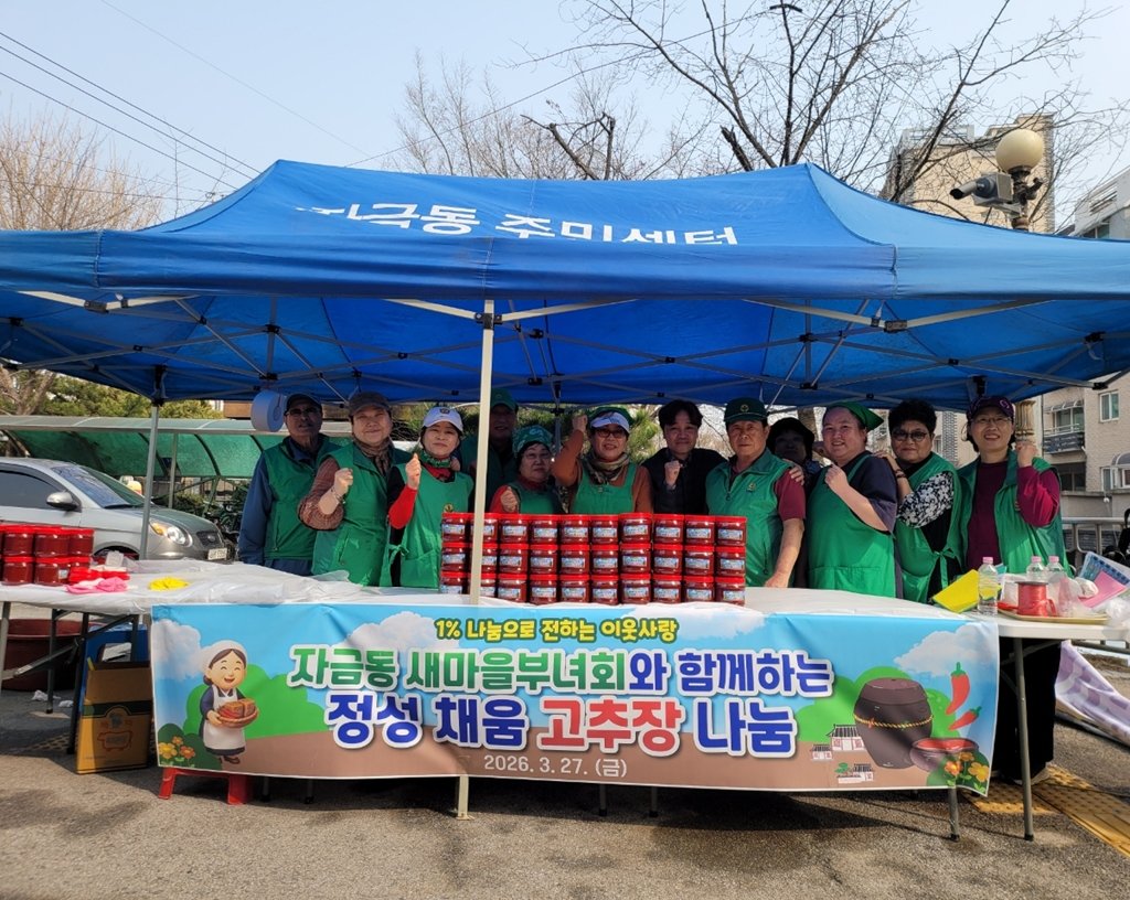 의정부시 자금동 새마을부녀회가 정성껏 담근 고추장 60통을 어려운 이웃에게 전달하며 훈훈한 나눔을 실천했다.자금동주민센터는 지난 3월 27일 부녀회의 따뜻한 기탁 소식을 알렸다. ‘1% 나눔으로 전하는 이웃사랑’ 이라는 슬로건 아래, 자금동 새마을부녀회는 매년 고추장 나눔을 이어오고 있다.부녀회원들은 고추장 재료를 손수 준비하고 정성껏 담그며 따뜻한 마음을 더했다. 회원들의 손길이 담긴 고추장은 지역 내 어려운 이웃들의 식생활에 실질적인 도움을 줄 것으로 보인다.김정숙 부녀회장은 “회원들과 함께 정성껏 준비한 고추장이 이웃들의 식탁에 작은 보탬이 되길 바란다”고 말했다. 이어 “앞으로도 지역사회와 함께하는 나눔 활동을 꾸준히 이어갈 것”이라고 덧붙였다.유진환 자금동장은 “매년 잊지 않고 따뜻한 나눔을 실천해 주시는 새마을부녀회에 깊이 감사드린다”고 전했다. 덧붙여 “기탁해주신 물품이 필요한 이웃들에게 유용하게 쓰일 수 있도록 최선을 다하겠다”고 밝혔다.자금동 새마을부녀회의 따뜻한 나눔은 앞으로도 지역사회에 훈훈한 온기를 불어넣을 것으로 기대된다.