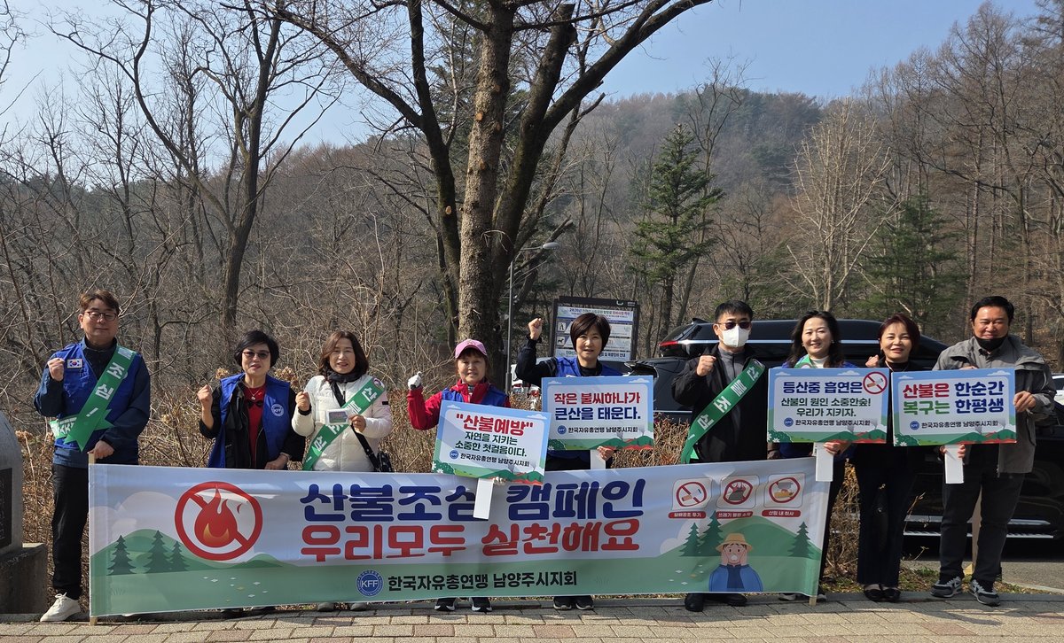 남양주시가 한국자유총연맹 남양주시지회와 함께 산불 예방을 위한 캠페인을 진행했다.산불 위기경보가 '경계' 단계로 격상된 가운데, 지난 28일 화도읍 천마산 관리소 일대에서 캠페인이 펼쳐졌다. 시는 이번 캠페인을 통해 시민들의 경각심을 고취하고, 산불 예방 문화를 확산하는 데 집중한다.특히 등산객들의 방문이 잦은 천마산에서 현장 중심의 예방 활동을 강화했다. 한국자유총연맹 남양주시지회 회원 10명은 주요 등산로 입구와 탐방로 일대에서 산불 예방 홍보 활동을 적극적으로 펼쳤다.회원들은 '산불조심' 문구가 담긴 홍보물을 배부하며, 입산 시 화기물 소지 금지, 지정된 장소 외 취사 금지 등 기본 수칙을 알렸다. 산림 내 인화물질 방치 금지, 담배꽁초 무단 투기 금지 등 생활 속 실천 사항도 함께 홍보했다.등산객들과 직접 소통하며 산불 예방의 중요성을 강조하고, 자발적인 참여를 독려했다. 선미숙 자문위원장은 “작은 부주의가 대형 산불로 이어질 수 있다”며 시민들의 관심과 실천을 강조했다.시는 이번 캠페인을 계기로 주요 산림 지역 중심의 민관 협력 캠페인을 확대할 계획이다. 취약 지역 순찰 계도 활동을 강화하여 산불 예방 활동을 지속적으로 추진할 방침이다.