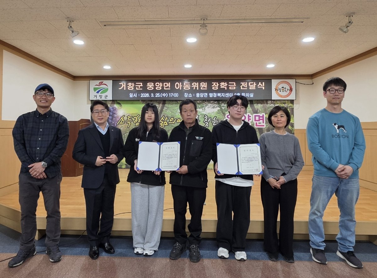 거창군 웅양면 아동위원들이 지역 학생들을 위한 따뜻한 마음을 전했다. 지난 25일, 웅양면 행정복지센터에서 관내 중학생 2명에게 장학금과 장학증서를 전달하는 뜻깊은 자리가 마련됐다.이번 장학금은 웅양면 아동위원들의 자발적인 기부금으로 조성됐다. 학생 1인당 30만원씩, 총 60만원의 장학금이 전달되어 학업 성적이 우수한 학생들을 격려하고, 지역 인재로 성장할 수 있도록 지원한다.강선길 웅양면장을 비롯해 신용욱, 정규송 아동위원이 전달식에 참석했다. 이들은 학생들의 노력을 격려하고 학업에 대한 의지를 북돋았다.특히 신용욱 아동위원은 "학생 한 명 한 명이 지역의 소중한 자산"이라고 강조했다. 앞으로도 학생들이 꿈을 키우고 성장할 수 있도록 다양한 지원사업을 추진할 계획이라고 밝혔다.거창군 아동위원회는 지역 아동의 건강한 성장과 교육 환경 개선을 위해 꾸준히 노력하고 있다. 학업 우수 학생에 대한 장학사업을 통해 지역사회의 교육 기반 강화에도 힘쓸 예정이다. 웅양면 아동위원들의 따뜻한 마음이 학생들의 밝은 미래를 응원하고 있다. -