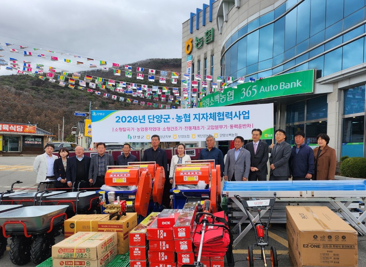 단양군이 농협과 손잡고 농업인들에게 맞춤형 영농편의장비를 지원한다.이번 지원은 농가의 경영비 절감과 고령화로 인한 노동력 부족 해소에 크게 기여할 것으로 전망된다.군은 지난 31일 단양소백농협 경제사업장에서 ‘2026년 지자체협력사업 영농편의장비 전달식’을 개최하고 농자재 지원을 본격적으로 시작했다고 밝혔다. 이날 전달식에는 김경희 단양군 부군수를 비롯해 지역농협 조합장, 농협 단양군지부장, 농업인 등 20여명이 참석했다.이번 사업에는 총 10억원의 사업비가 투입된다. 1034농가를 대상으로 소형탈곡기, 농업용 작업대, 소형건조기, 전동제초기, 농업용 차량형 분무기, 동력운반차 등 6개 품목의 영농편의장비 중 농가가 필요로 하는 장비를 선택해 지원받을 수 있도록 했다.단양군과 농협중앙회, 단양농협, 북단양농협, 단양소백농협, 그리고 농업인이 공동으로 참여하는 협력사업이라는 점에서 그 의미가 크다.실질적인 농가 맞춤형 지원이라는 평가를 받고 있다.군은 이번 장비 지원을 통해 농촌 고령화로 인한 노동력 부족 문제를 완화하고 영농 효율성을 높여 농가 소득 증대에 크게 기여할 것으로 기대하고 있다. 특히 농업 현장의 부담을 덜어주는 데 초점을 맞췄다.군 관계자는 “이번에 지원되는 영농편의장비가 농업 현장의 부담을 덜어주는 데 도움이 되길 바란다”고 말했다. 더불어 “앞으로도 기후변화 대응과 농가소득 향상에 기여할 수 있는 다양한 지원사업을 지속적으로 발굴하겠다”고 덧붙였다. -