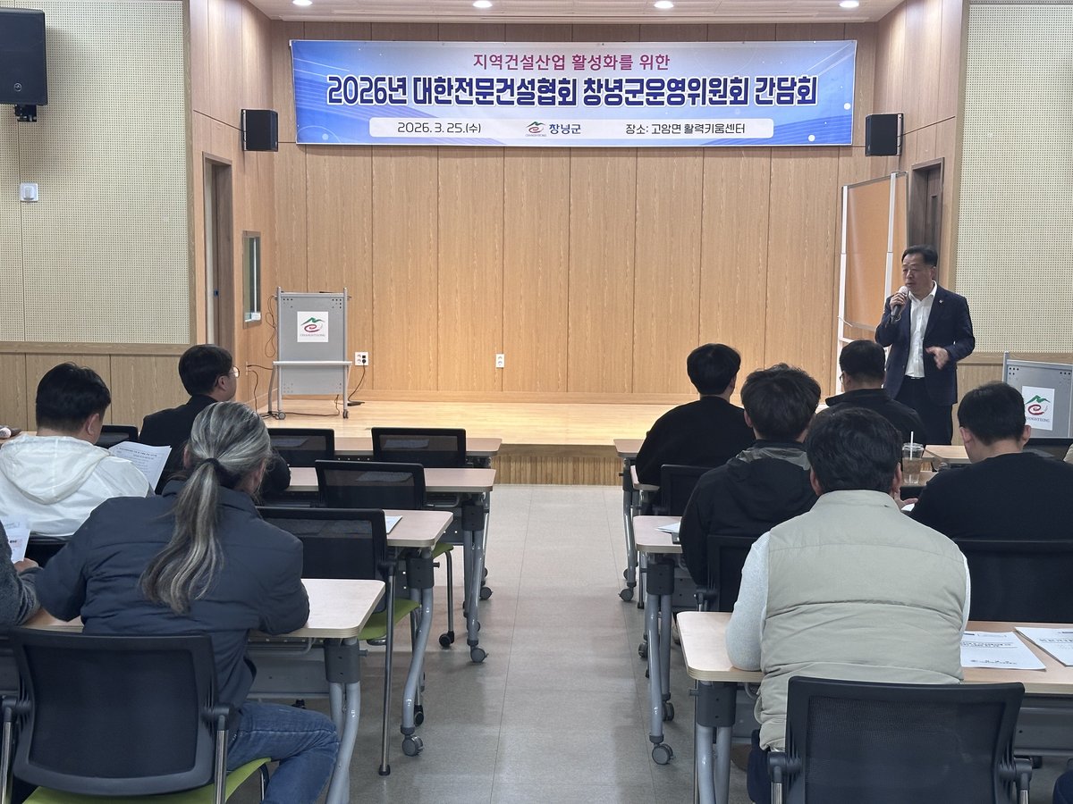 창녕군은 지역전문건설업체의 경쟁력 강화와 건설산업 활성화를 위해 창녕군 전문건설협회와 함께 25일간담회를 개최했다고 밝혔다.이번 간담회는 장영준 대한전문건설협회 창녕군운영위원장, 조성만 부위원장 등...