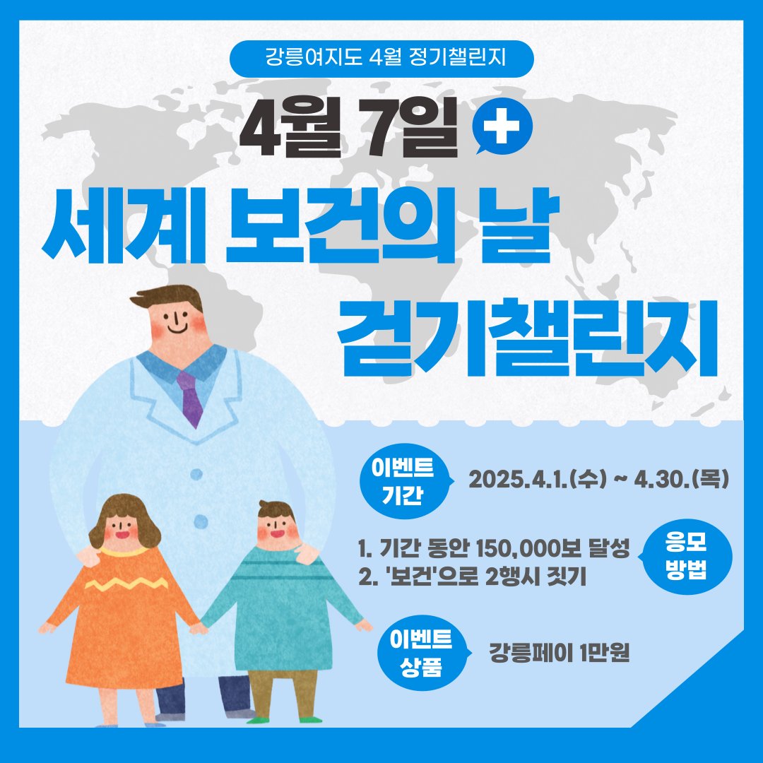 강릉시가 4월 7일 보건의 날을 맞아 시민들의 건강한 생활 습관 형성을 돕기 위해 걷기 챌린지와 명품길 걷기 프로그램을 운영한다.이번 챌린지는 4월 한 달간 진행되며, 시민들의 걷기 실천을 장려하고 건강한 분위기를 조성하는 데 목적이 있다. 참여 방법은 간단하다. 기간 내 15만 보를 달성하고, '보건'으로 이행시를 작성해 제출하면 된다.목표를 달성한 참여자에게는 추첨을 통해 강릉페이 1만원이 지급된다. 모바일 걷기 앱을 통해 누구나 쉽게 참여할 수 있다는 점이 특징이다.강릉시는 걷기 동아리 참여자들을 위한 특별 프로그램도 마련했다. 강릉의 아름다운 명소를 걸으며 즐기는 '명품길 걷기 프로그램'이다. 이 프로그램은 강릉의 수려한 자연환경을 배경으로 걷기 명소를 탐방하는 코스로 구성됐다.참여자들은 지속적인 신체 활동을 통해 건강을 증진하고, 동아리 간 교류를 통해 소통을 활성화할 수 있다. 권혁여 강릉시보건소장은 "이번 걷기 챌린지와 명품길 걷기 프로그램이 시민들의 걷기 실천을 활성화하는 계기가 되기를 바란다"고 밝혔다.강릉시는 앞으로도 다양한 걷기 프로그램을 개발해 시민 건강 증진과 건강한 도시 환경 조성에 힘쓸 계획이다. -
