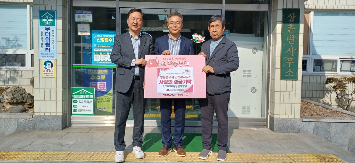 안진삼 법무사가 상촌면의 어려운 이웃을 돕기 위해 100만원을 기탁했다.상촌면지역사회보장협의체는 안진삼 법무사의 따뜻한 마음에 감사를 표하며, 기탁금을 지역 복지 증진을 위해 사용할 계획이라고 밝혔다. 이번 기탁으로 상촌면에는 네 번째 '기부천사'가 탄생했다.기탁식은 상촌면사무소에서 열렸으며, 협의체 위원들이 참석하여 나눔의 의미를 되새겼다. 이들은 지역 복지 발전을 위한 협력을 다짐했다.안진삼 법무사는 평소에도 지역 사회에 꾸준한 관심을 갖고 나눔을 실천해 온 것으로 알려졌다. 그의 선행은 지역 사회에 귀감이 되고 있다.기탁된 성금은 상촌면지역사회보장협의체를 통해 저소득 가구, 독거노인, 복지 사각지대에 놓인 이웃들을 지원하는 데 사용될 예정이다. 특히 긴급한 생활 지원이 필요한 가구에 우선적으로 지원될 계획이다.안진삼 법무사는 “지역사회 구성원으로서 어려운 이웃을 돕는 것은 당연한 일이라고 생각한다”며 “작은 정성이지만 필요한 분들에게 힘이 되기를 바란다”고 말했다.남승록 위원장은 “평소 지역을 위해 꾸준히 나눔을 실천해 주시는 데 깊이 감사드린다”며 “기탁된 성금은 꼭 필요한 곳에 소중히 사용하겠다”고 밝혔다. 덧붙여 “이러한 나눔이 확산되어 더불어 사는 지역 공동체가 더욱 활성화되기를 기대한다”고 말했다.