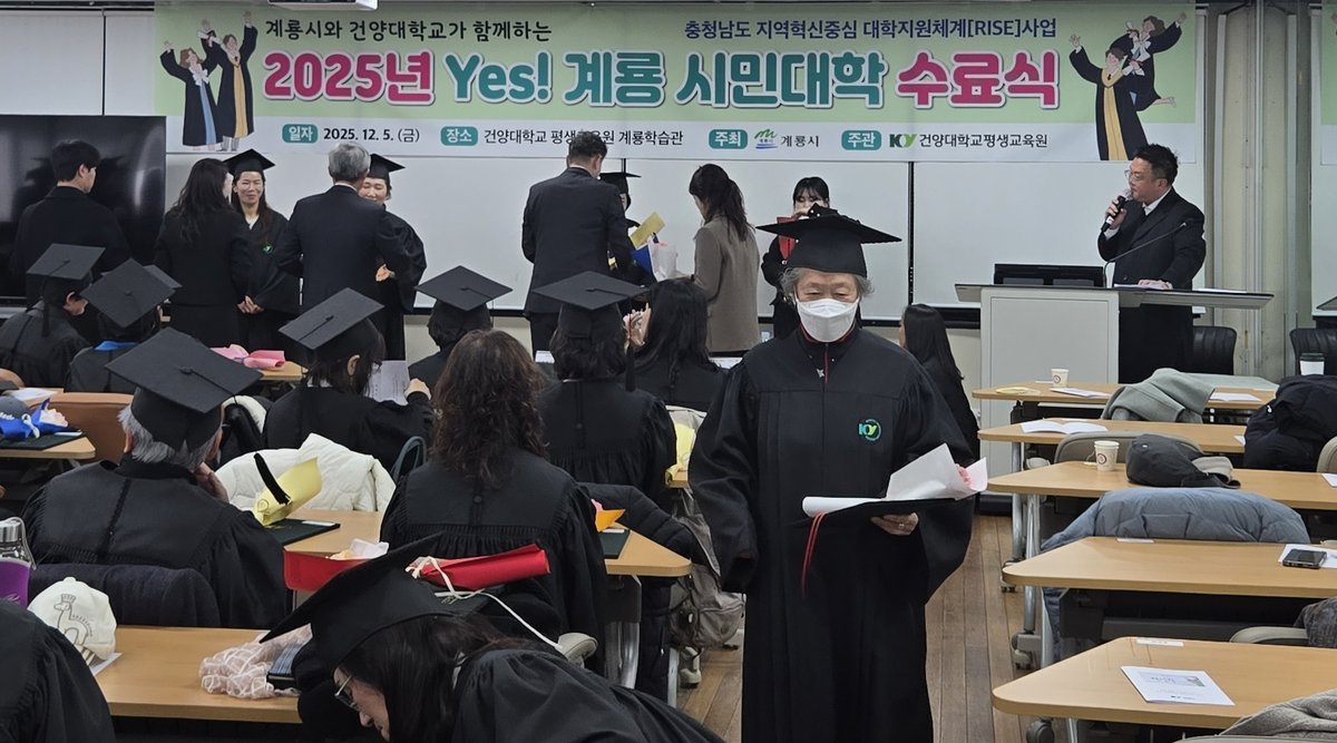 계룡시가 건양대학교와 함께 운영한 '2025년도 Yes! 계룡 시민대학' 수료식을 성공적으로 개최했다.이번 수료식은 76명의 수료생과 가족, 계룡시 및 건양대학교 관계자 등 100여 명이 참석하여 배움의 ...