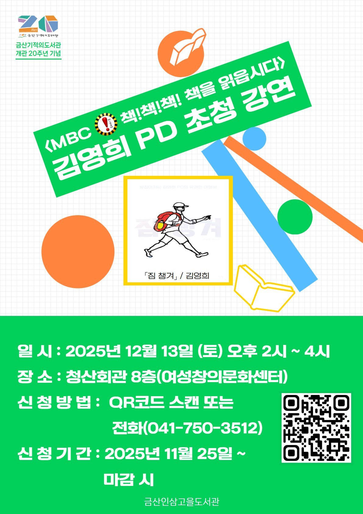 금산기적의도서관, 개관 20주년 기념 김영희 작가 초청 강연