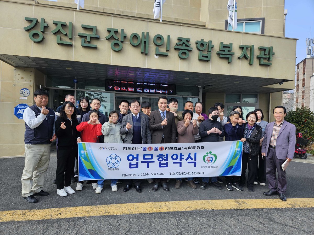 강진문화원이 강진군장애인종합복지관과 손을 잡았다. 발달장애인의 국가유산 향유 기회를 넓히고 사회 참여를 돕기 위한 협약이다.양 기관은 지난 25일 복지관에서 협약식을 열었다. 박종민 강진문화원장을 비롯해 강경애 기획팀장, 복지관 관계자들이 참석했다.이번 협약은 '폼 폼 강진향교' 사업의 일환으로 추진됐다. 2026 향교 서원 국가유산 활용 사업을 통해 발달장애인에게 특별한 경험을 제공할 계획이다.협약을 통해 양 기관은 발달장애인 맞춤형 문화유산 향유 프로그램을 공동 개발한다. 체험 및 교육 프로그램 운영, 지역 문화자원 연계 활동 확대 등 다양한 분야에서 협력할 예정이다.특히 참여자 중심의 프로그램 설계에 초점을 맞춘다. 발달장애인의 자존감 향상은 물론 사회성 발달과 정서적 안정에도 긍정적인 영향을 줄 것으로 기대된다.박종민 강진문화원장은 “이번 협약은 지역사회가 함께 만드는 포용적 문화환경의 시작”이라고 강조했다. 지속적인 협력을 통해 모두가 함께하는 환경을 만들어나가겠다고 밝혔다.한편, '폼 폼 강진향교'는 국가유산청, 전라남도, 강진군이 후원하고 강진문화원이 주관한다. 2022년, 2023년, 2025년 3회에 걸쳐 '우수사업'으로 선정된 바 있다. 교육과 체험, 진로 특강 등 다채로운 프로그램을 통해 지역 문화 플랫폼으로서의 역할을 수행하고 있다. -