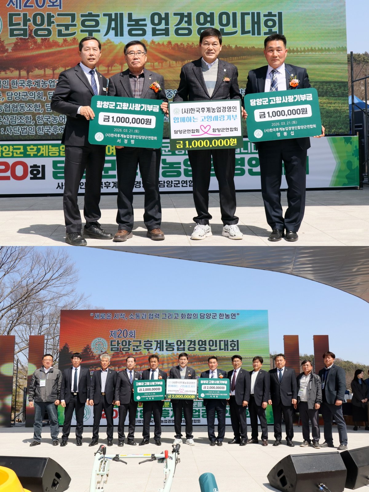 한국후계농업경영인 담양군연합회가 고흥군, 함양군연합회와 손잡고 고향사랑 상호 기부에 나섰다.지난 21일, '제20회 담양군 후계농업경영인대회'에서 고향사랑기부금 상호 기탁식이 진행됐다. 이 자...
