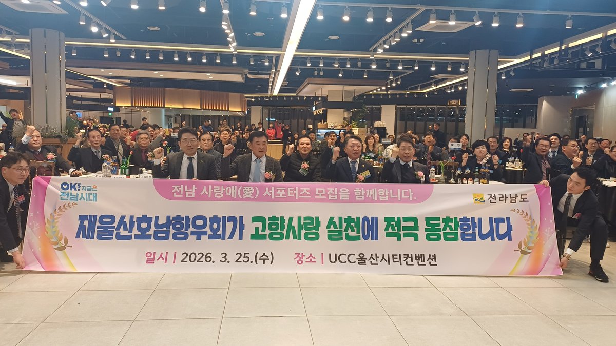 전라남도가 울산호남향우회와 고향 발전을 위한 굳건한 협력을 다짐했다. 지난 25일 울산에서 열린 재울산호남향우회 제56주년 정기총회에 전남도가 참석, 고향사랑 실천을 위한 도정설명회를 개최하고 향우회와의 지속적인 교류를 약속했다.1970년 설립된 울산호남향우회는 현재 약 33만 명의 향우가 활발히 활동 중이다. 이들은 지역 교류는 물론, 고향 방문을 꾸준히 이어오고 있다. 특히 고향을 위한 기부 운동에 적극 참여하며 울산지역 희망나눔캠페인 성금 전달, 명절맞이 생활용품 나눔 행사 등 다양한 봉사활동을 펼치고 있다.이날 행사에는 이성구 울산호남향우회 회장을 비롯해 강영주 수석부회장, 박갑현 상무의장 등 200여 명의 향우가 참석하여 자리를 빛냈다.정기총회에서는 국립의대 부속병원 설립을 위한 지정기부 논의가 진행됐다. 또한 전남 사랑애 서포터즈 홍보 등 전남 고향사랑 실천 방안이 모색됐으며, 공로패 수여와 후원회 지원금 전달식도 진행됐다.이성구 재울산호남향우회장은 "향우회의 헌신은 고향을 향한 변함없는 사랑의 증거"라며 "앞으로도 봉사와 나눔을 통해 고향의 미래를 밝히는 든든한 동반자가 될 것"이라고 강조했다.박주환 전남도 고향사랑과장은 울산호남향우회에 감사의 뜻을 전했다. 그는 "향우 여러분의 따뜻한 성원과 참여는 전남 발전의 큰 원동력"이라며 "앞으로도 고향사랑 실천을 위한 적극적인 참여를 부탁드린다"고 말했다. -