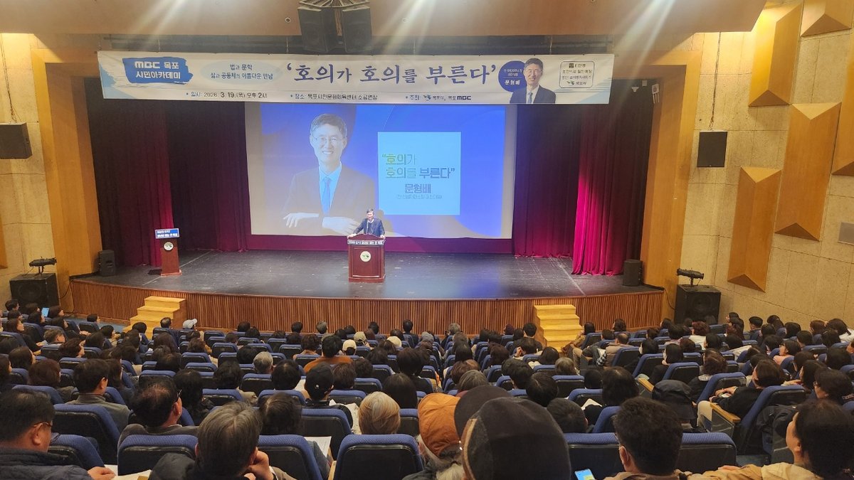 문형배 전 헌법재판소장 권한대행이 지난 19일 목포시민아카데미에서 '호의가 호의를 부른다'는 주제로 강연을 진행했다. 400명이 넘는 시민이 참여한 이번 강연은 공동체의 따뜻한 이야기를 나누며 큰...