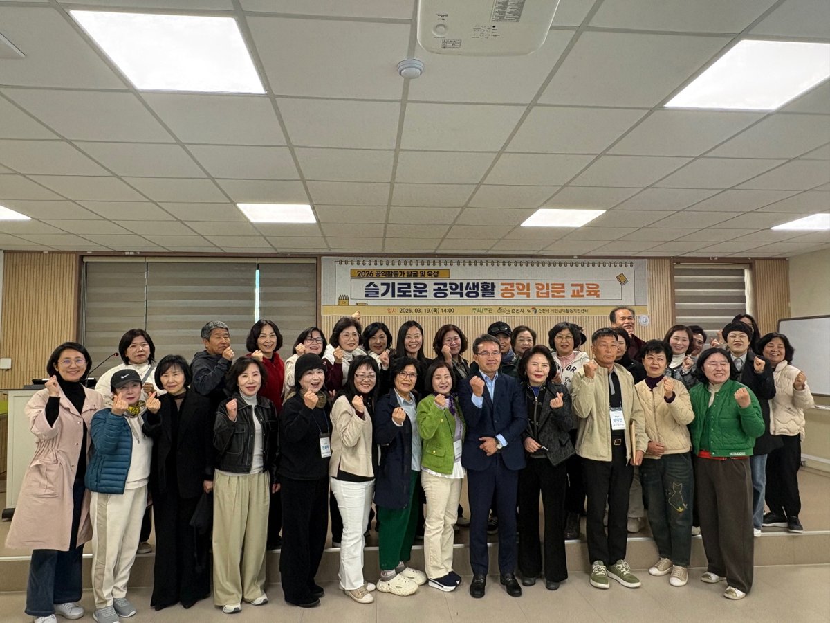 순천시가 지난 19일 시민공익활동지원센터에서 공익활동가 기본 교육인 '2026 슬기로운 공익생활'을 열었다.이번 교육은 급변하는 지역사회 환경 속에서 공익활동의 방향을 찾고, 활동가의 역량을 강화...