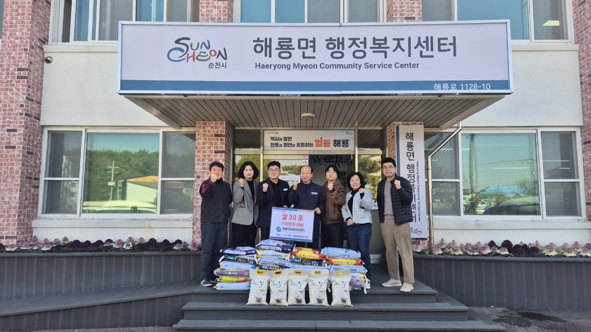 순천시 해룡면에 위치한 환경 소재 전문기업 ㈜서우인이 지난 19일, 해룡면의 어려운 이웃들을 위해 쌀 30포를 기탁하며 따뜻한 나눔을 실천했다.이번에 전달된 쌀은 해룡면행정복지센터를 통해 해룡면 내 취약계...