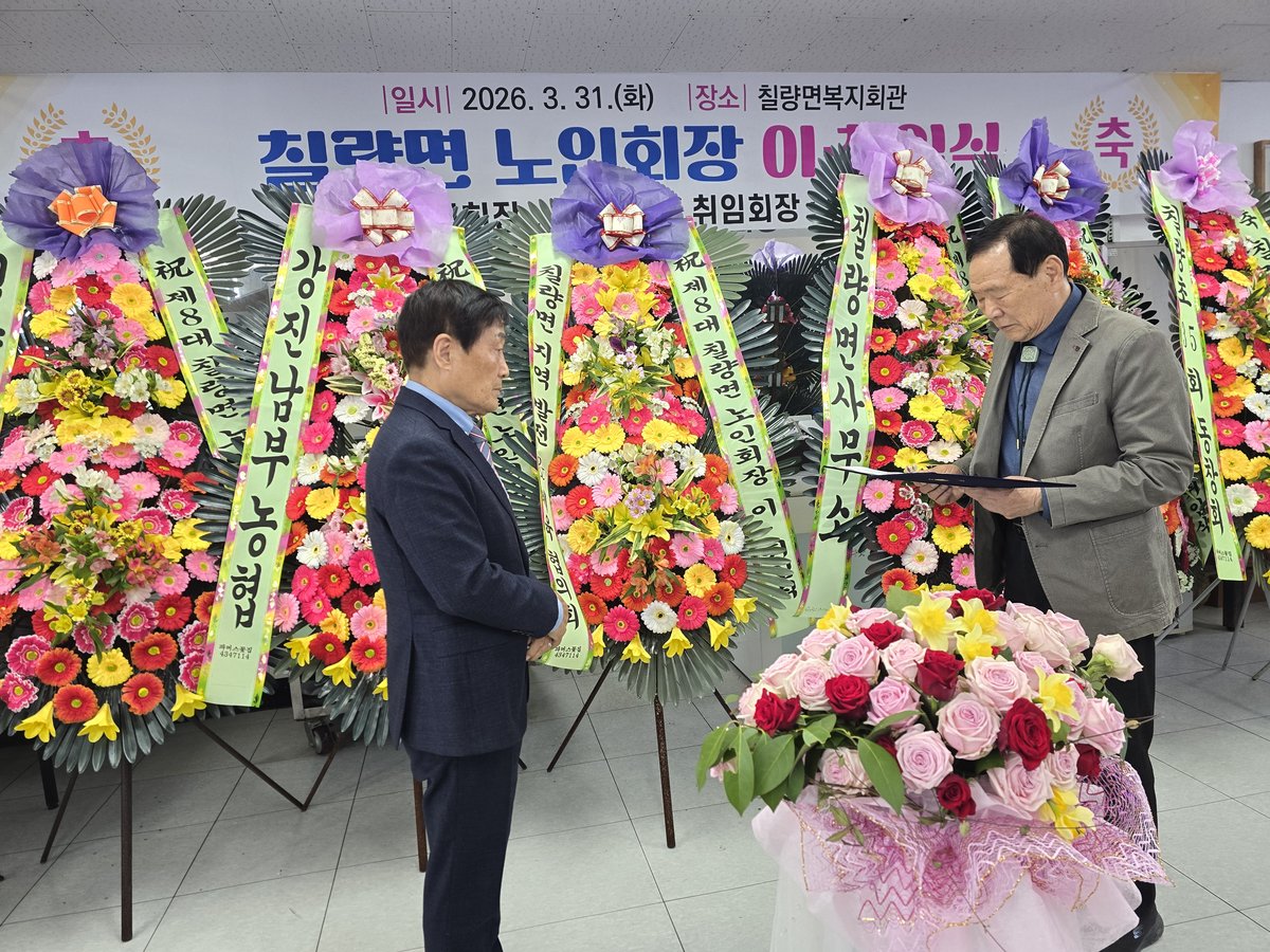 강진군 칠량면 노인회가 새로운 수장을 맞이하며 힘찬 도약을 예고했다. 칠량면은 지난 31일 복지회관 경로식당에서 제8대 및 제9대 노인회장 이·취임식을 성황리에 개최했다.이날 행사에는 노인회원과 기관단체장 등 130여 명이 참석하여, 지역 어르신들의 화합과 새로운 시작을 함께 축하했다. 행사는 기존 명재정 회장의 노고를 기리고, 신임 유영호 회장의 취임을 축하하는 분위기 속에서 진행되었다.특히, 그동안 노인회 발전에 헌신한 명재정 이임회장에게는 감사패가 전달되어 감동을 더했다. 황호용 지부장은 유영호 취임회장에게 임명장을 수여하며, 새로운 시작을 공식적으로 알렸다.제9대 칠량면 노인회는 4월 1일부터 4년의 임기를 시작한다. 유영호 신임 회장은 취임사를 통해 “어르신들의 복지 향상과 회원 간 단합을 위해 최선을 다하겠다”고 밝혔다.칠량면 노인회는 앞으로도 지역 어르신들의 삶의 질 향상과 건강한 여가활동 지원을 위해, 다양한 활동을 이어갈 계획이다. 칠량면 어르신들의 활기찬 노년 생활을 위한 노인회의 역할이 더욱 기대된다. -