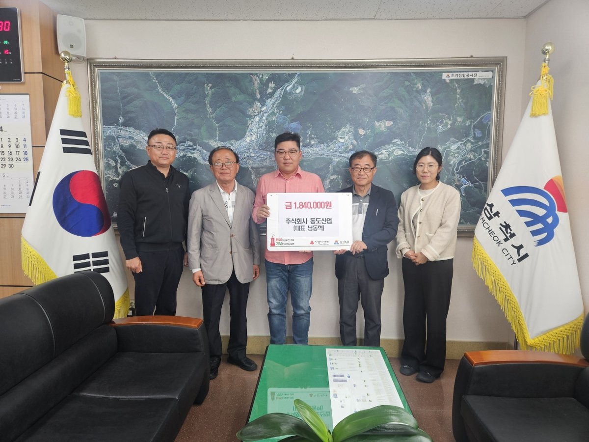 삼척시 도계읍에 따뜻한 나눔의 손길이 이어졌다. ㈜동도산업은 4월 15일, 도계읍 행정복지센터를 찾아 어려운 이웃을 위한 성금 184만원을 기탁했다.이날 기탁식에는 동도산업 남동혁 대표와 관계자들이 함께했...