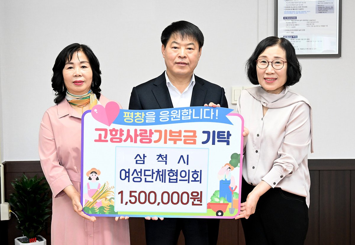 평창군과 삼척시 여성단체가 고향사랑기부금을 상호 기부하며 끈끈한 협력 관계를 이어가고 있다. 15일, 평창군 부군수 집무실에서는 삼척시 여성단체협의회와 고향사랑기부제 활성화를 위한 기부금 전달식이 열...