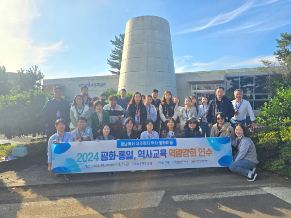 충남교육청은 10월 30일부터 11월 1일까지 3일간 제주에서 도내 초·중·고 교사 30여명을 대상으로 평화·통일과 역사교육 역량 강화를 위한 연수를 진행했다고 밝혔다. 이번 연수는 교사들의 평화 감수성을 높이고 교육 현장에서 역사교육을 효과적으로 전개할 수 있는 역량을 키우기 위해 마련됐다. 제주 4·3사건의 역사적 현장을 방문하는 과정에서 교사들은 ‘제주 4·3의 흔적을 찾아서’라는 사전 원격연수를 이수해 제주 현장교육과의 연계성을 높였다. 1일 차에는 너븐숭이 4·3기념관을 찾아 제주 4·3 유족회 이상언 부회장으로부터 북촌 일원에서 발생한 4·3의 역사적 배경과 사건에 대해 안내받고 북촌초등학교와 옴팡밭, 서우봉 일제 동굴 진지 등 주요 유적지를 탐방했다. 이어지는 2일 차와 3일 차에는 제주 4·3재단이 주최한 ‘2024 전국 교원 4·3 평화·인권교육 직무연수’에 참여해 4·3 평화기념관, 동광 무동이왓, 섯알오름, 백조일손묘역을 순회하며 4·3사건을 다룬 교육 방안과 수업 사례를 공유했다. 교사들은 탐방과 토론을 통해 평화와 인권 교육의 중요성을 몸소 느끼며 깊은 성찰의 시간을 가졌다. 이번 연수에 참여한 논산중학교 강성규 교사는 “제주 4·3의 아픔을 현장에서 직접 마주하면서 평화교육에 대한 책임감을 재확인했다”고 소감을 밝혔다. 김지철 교육감은 “제주에서의 이번 연수가 충남과 제주를 잇는 평화와 역사교육의 유의미한 교류의 장이 되길 바란다”며 “현장에서 나눈 경험과 성찰이 학생들에게 평화 감수성과 화해의 가치를 심어주는 데 이바지하기를 기 -