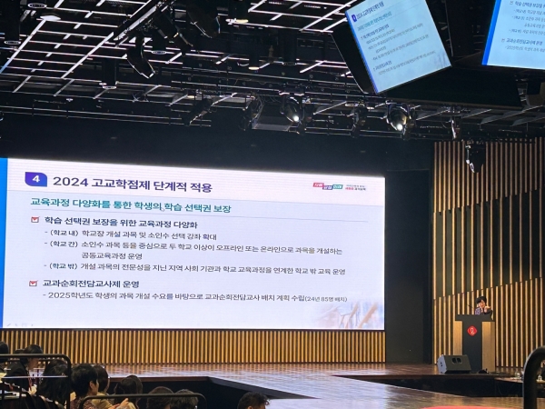 인천광역시교육청은 10월 30일 송도 컨벤시아에서 초·중·고 교원들을 대상으로 ‘2024년 인천바로알기 교육과정연계 학급 운영 나눔회’를 개최했다. 제3회 세계를 품은 인천교육 한마당’과 연계해 진행된 이번 나눔회는 △ 2024 인천바로알기 교육과정연계 운영 사례 나눔 △ 중학교 고시외 과목‘인천바로알기’ 개발 안내 및 홍보 △ 질의응답 및 협의 △만족도 조사 순으로 진행됐다. 특히 지역단체와 단위학교에서 추진했던 교육과정연계 인천길탐방 사례를 공유하며 ‘인천바로알기’ 및 인천이해교육 활성화를 위한 비전을 제시했다. 참석자들은 “다양한 운영 사례를 통해 많은 것을 배울 수 있었고 2025년 도입 예정인 중학교 고시외 과목 '인천바로알기'에 대한 정보를 얻을 수 있어 유익했다”고 소감을 전했다. 도성훈 교육감은 “앞으로도 ‘인천바로알기’ 사업 및 인천이해교육 활성화를 위해 아낌없이 지원하겠다”고 밝혔다. -