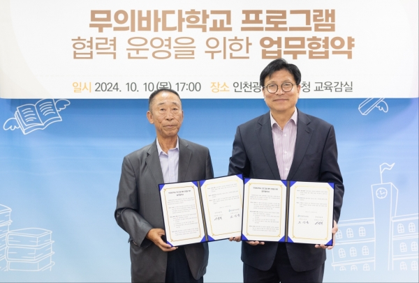 인천광역시교육청은 10일 무의 바다학교 프로그램 운영을 위해 무의도 포내어촌계와 업무협약을 체결했다. 이번 협약에서 양 기관은 지속적인 운영을 위한 인프라를 구축하고 무의 바다학교 프로그램 개발 및 운영을 약속했다. 또한 학생과 교원의 해양 소양 함양과 기후 위기 대응을 통해 인천 학생들이 지구생태시민으로 성장할 수 있게 노력하기로 협의했다. 도성훈 교육감은 “인천시교육청은 기후위기시대, 해양의 보전과 활용을 위해 인천형 해양교육을 확대하고 있다”며 “이번 협약을 계기로 무의도 주민들과 지속적으로 협력해 나가겠다”고 말했다. -