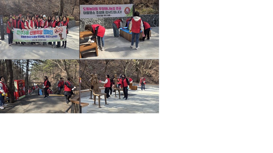 인천 남동구 만수3동 통장자율회가 도롱뇽 무장애 나눔길 일대에서 환경정비 활동을 펼쳤다. 쾌적하고 안전한 마을 환경을 만들기 위해서다.이번 활동은 새롭게 조성된 도롱뇽 무장애 나눔길을 주민들이 더욱 많이 이용하도록 깨끗하게 유지하는 데 목적이 있다. 통장자율회 회원들은 구슬땀을 흘리며 시설물, 벤치, 운동기구 등의 먼지를 닦아냈다.특히 나눔길 곳곳에 쌓인 먼지를 꼼꼼히 제거하며 주민 불편을 최소화했다. 누구나 안전하고 쾌적하게 이용할 수 있는 환경을 조성하는 데 힘을 쏟았다.문미경 만수3동 통장자율회장은 “주민들이 일상 속에서 편안하게 이용하는 공간인 만큼 지속적인 관리가 중요하다”고 강조했다. 이어 “앞으로도 도롱뇽 마을을 스스로 가꾸고 지켜나가는 데 앞장서겠다”고 말했다.신희자 만수3동장은 통장자율회의 적극적인 참여에 감사를 표했다. 신 동장은 “새롭게 조성된 우리 동 명소인 도롱뇽 무장애길을 우리 손으로 관리하고 지킬 수 있도록 환경정비 활동을 지속적으로 추진해 살기 좋은 마을을 만들어나가겠다”고 밝혔다. -