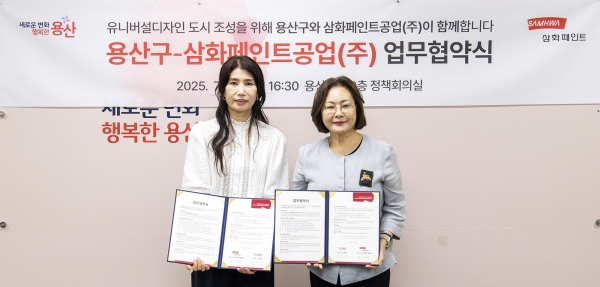 서울 용산구가 지난 22일 삼화페인트공업과 컬러 유니버설디자인 적용 확대를 위한 업무협약을 체결했다. 이번 협약은 모든 구민이 도시 공간에서 평등하게 생활할 수 있도록 도시 디자인의 안전성과 포용성을 ...