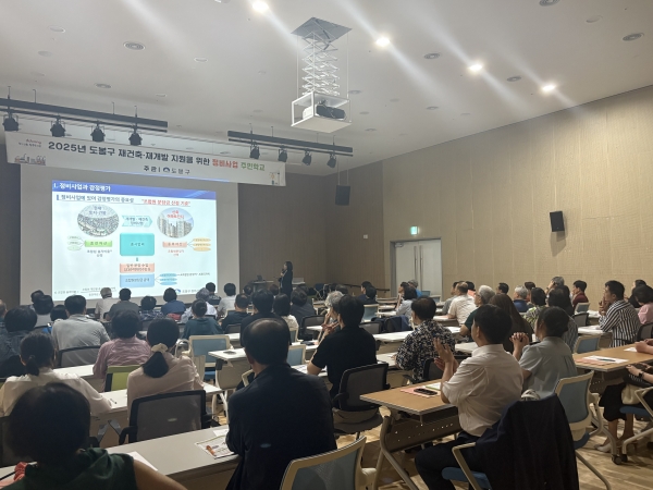 서울 도봉구가 지난 7월 16일 창동아우르네 지하1층 대강당에서 올해 두 번째 정비사업 주민학교를 개최했다. 이날 강의장에는 주민 등 100여명이 참석해 지역 내 정비사업에 대한 높아진 관심을 증명했다. 구...