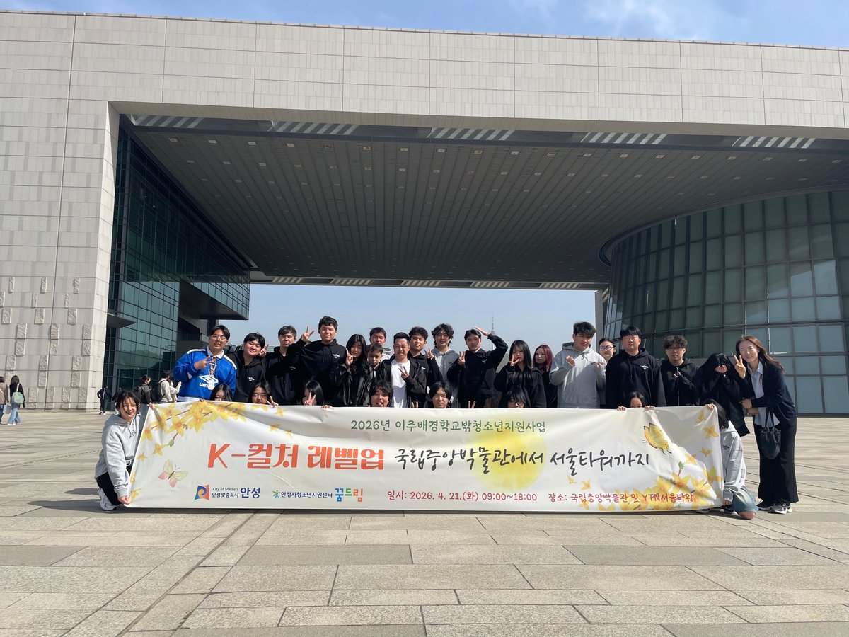 안성시학교밖청소년지원센터는 지난 21일 관내 이주배경 학교 밖 청소년 30명을 대상으로 한국 문화에 대한 친밀감을 높이고 사회 적응을 돕기 위한 ‘K-컬처 레벨업: 박물관부터 타워까지’ 프로그램을 진행했다고...