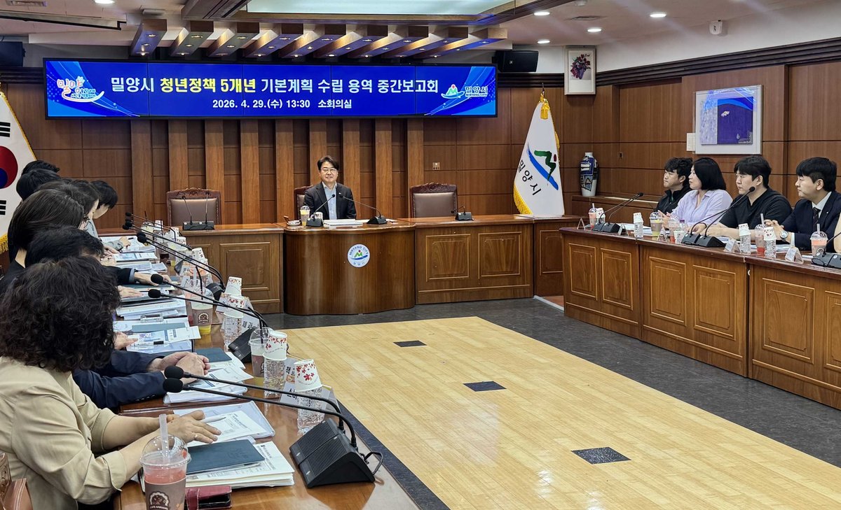 밀양시가 지역 청년들의 현실적인 수요를 반영한 '제2차 청년정책 5개년 기본계획' 수립에 속도를 내고 있다. 시는 지난 29일 시청 소회의실에서 용역 중간보고회를 열고 향후 5년간의 청년 비전과 세...