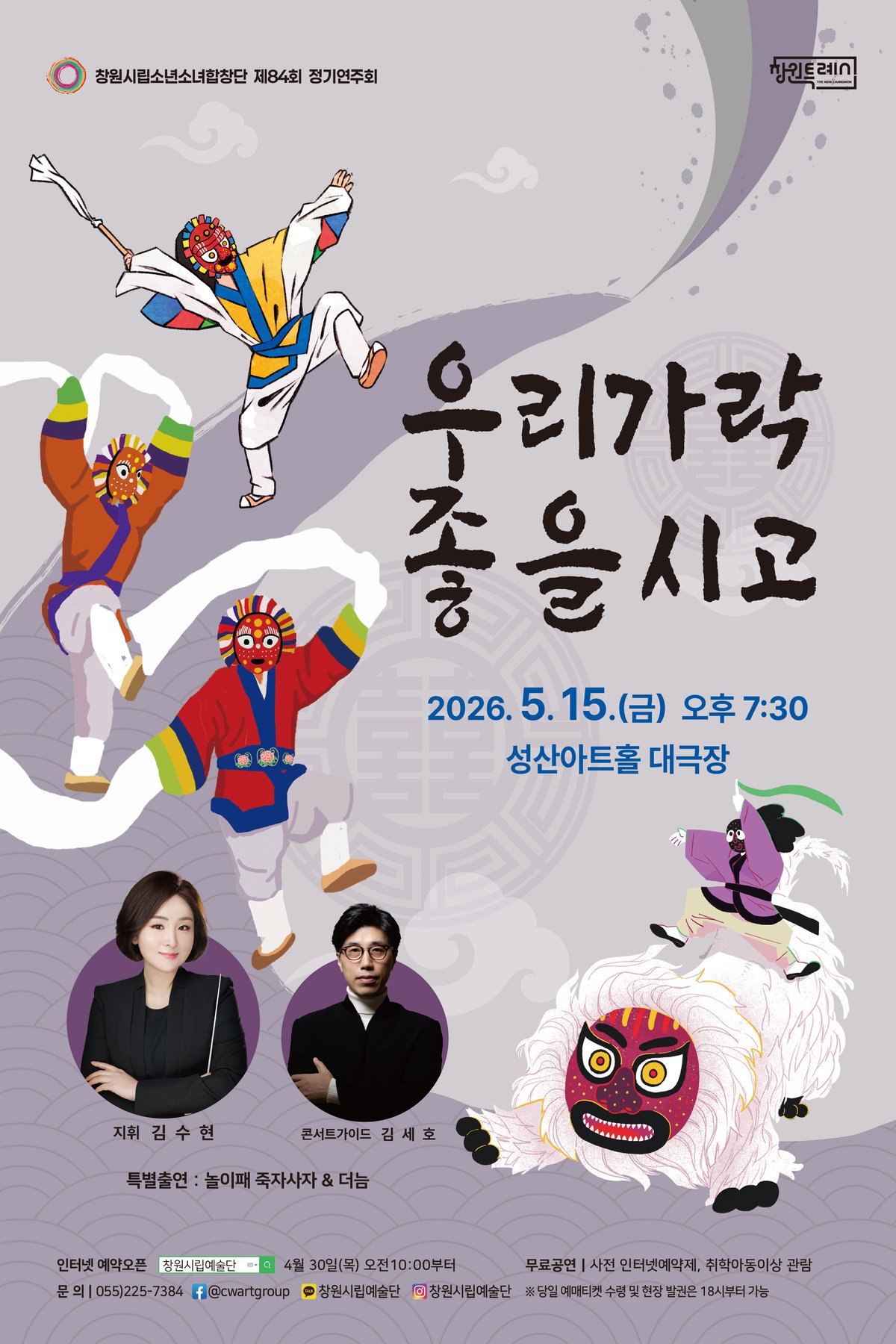 창원시립소년소녀합창단이 오는 5월 15일 오후 7시 30분 성산아트홀 대극장에서 제84회 정기연주회 '우리가락 좋을시고'를 개최한다. 이번 공연은 김수현 상임지휘자의 지휘 아래 전통 우리가락과 장단...