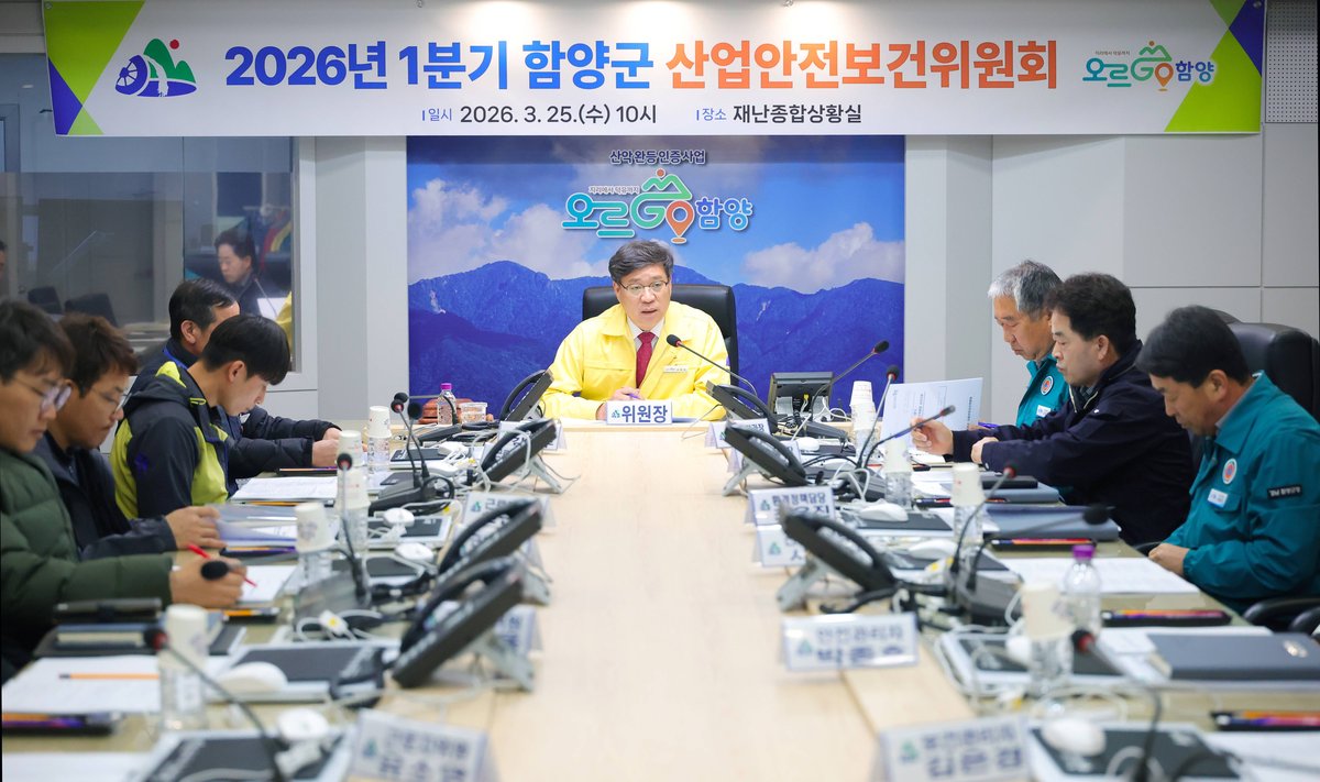 함양군이 산업 현장의 안전을 강화하기 위해 2026년 1분기 산업안전보건위원회를 개최했다.3월 25일 재난종합상황실에서 열린 회의에서는 산업재해 예방과 안전 관리를 위한 다양한 방안이 논의됐다. 특히 2025년 하반기 의무사항 이행 점검 결과 보고를 통해 개선점을 도출하고, 2026년 산업안전보건교육 추진 계획과 상반기 작업환경 측정 실시 계획을 심의했다.산업안전보건위원회는 함양군 소속 현업 종사자들의 안전과 보건에 관한 주요 사항을 심의하고 의결하는 핵심 기구다. 위원회는 노사 대표를 포함한 총 14명의 위원으로 구성돼 산업재해 예방과 근로자 건강 증진을 위한 활동을 펼치고 있다.함양군은 군수를 책임 주체로 산업재해 예방 활동을 체계적으로 추진하고 있다. 안전총괄과 중대재해담당은 안전관리자와 보건관리자를 중심으로 현업 근로자들의 안전한 작업 환경을 조성하는 데 힘쓰고 있다.회의에 참석한 한 관계자는 “사소한 '아차 사고'가 중대재해로 이어질 수 있다는 점을 명심해야 한다”며, “작은 위험 요인이라도 간과하지 않는 습관을 통해 사고를 예방하는 것이 중요하다”고 강조했다.함양군은 앞으로도 근로자 곁에서 안전하고 건강한 함양을 만드는 데 최선을 다할 계획이다. 군 관계자는 “안전한 작업 환경을 조성하고, 산업재해 없는 함양군을 만들기 위해 지속적으로 노력하겠다”고 밝혔다. -