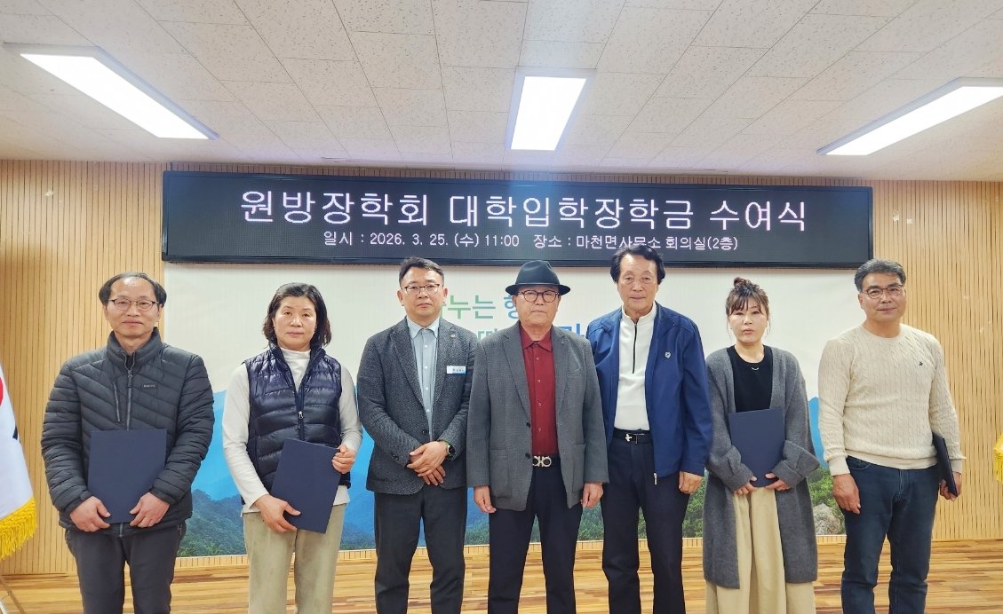 원방장학회가 마천면 출신 대학생들에게 장학금을 전달하며 지역 인재 육성에 힘을 보탰다.원방장학회는 지난 25일 마천면사무소에서 장학금 전달식을 열고 마천초등학교와 마천중학교 출신 대학 신입생 4명에게 각각 200만원씩, 총 800만원의 장학금을 전달했다. 이날 전달식에는 장학회 관계자와 학부모 등 30여명이 참석해 자리를 빛냈다.원방장학회의 장학금 지원은 이번이 처음이 아니다. 지난 2월에는 마천초등학교와 마천중학교 졸업식에서 성적 우수 졸업생 3명에게 총 250만원을 전달했다. 초등학생 17명과 중학생 5명에게는 표창과 함께 440만원 상당의 상품권을 부상으로 지급하기도 했다.뿐만 아니라 3월에는 마천초등학교 및 유치원 신입생과 전입생 6명에게 총 1560만원을 장학금으로 전달하며 신입생 유치에도 적극적으로 나서고 있다.신평수 이사장은 "원방 박경호 선생님의 뜻을 새겨 학생들이 훌륭한 인재로 성장하길 바란다"고 말했다. 그는 학생들이 대학에 가서도 열심히 공부하고 마천면을 빛낼 수 있도록 노력해달라고 당부했다.원방장학회는 2008년 박경호 선생이 10억원을 출연해 설립됐다. 매년 이자 수입으로 마천초등학교와 마천중학교 출신 재학생 및 대학 진학생에게 장학금을 지원하고 있다. 마천초등학교 신입생 유치를 위한 특별 장학금도 지급한다.지금까지 원방장학회는 총 215명에게 3억 690만원의 장학금을 지원했다. 앞으로도 꾸준한 장학금 지원을 통해 지역사회 발전에 기여할 것으로 기대된다. -