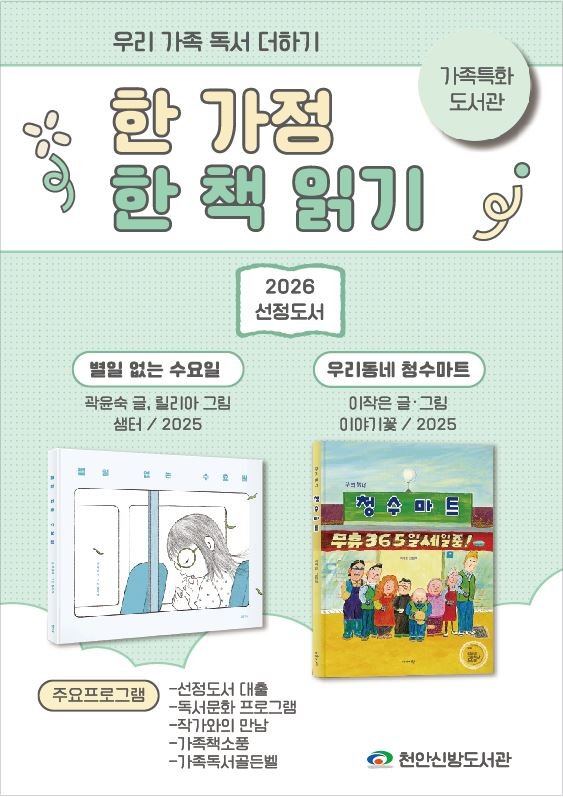 천안신방도서관, 온 가족 독서 장려하는 '한 가정 한 책 읽기' 본격 운영