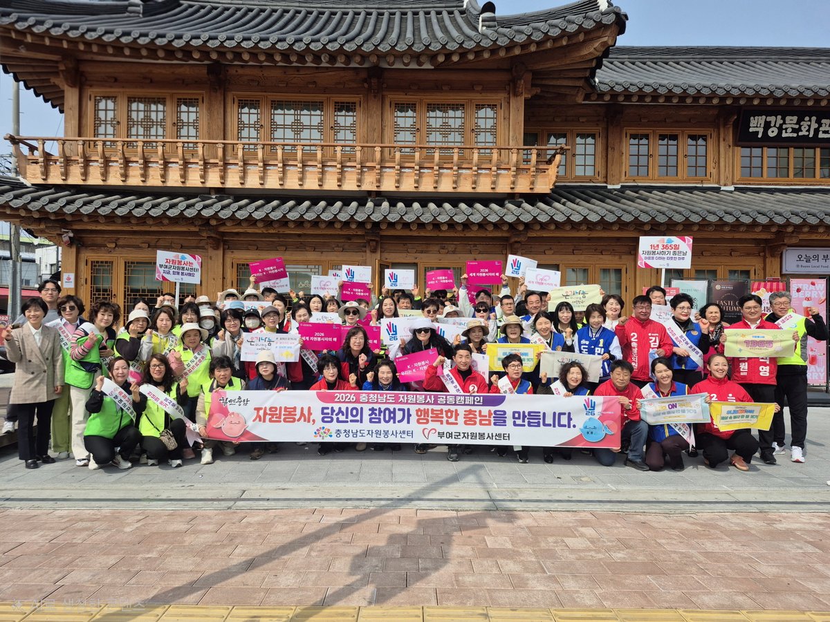 부여군이 자원봉사 인식 확산과 나눔 문화 정착을 위해 ‘2026 부여군 자원봉사 공동캠페인’의 시작을 알렸다. 지난 31일 부여읍 중앙로 일원에서 진행된 이번 캠페인은 군민들이 자원봉사의 가치를 일상에서 자연...