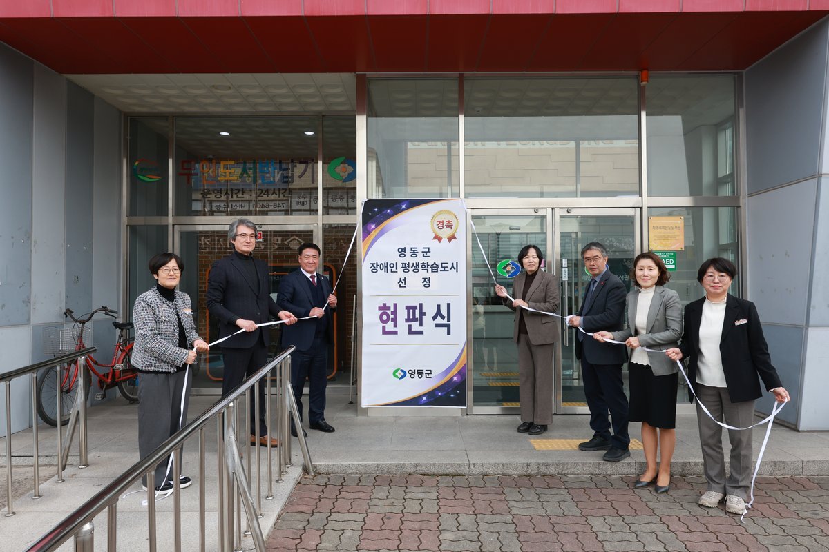 영동군이 장애인 평생학습도시로 공식 지정됨을 기념하는 현판식을 평생학습관에서 개최했다. 이번 현판식은 장애인의 평생학습 권리를 보장하고 학습 환경을 조성하기 위한 영동군의 의지를 보여주는 중요한 행사다.이날 행사에는 영동군수를 비롯하여 김선미 국립특수교육원 원장, 박병규 영동군장애인복지관장, 박희호 영동군장애인협의회장 등 주요 내빈과 장애인단체 관계자들이 참석하여 자리를 빛냈다. 참석자들은 현판 제막식과 기념 촬영을 진행하며 영동군의 새로운 시작을 축하했다.차담회에서는 장애인 평생학습도시 지정에 대한 소감과 함께 향후 운영 방향, 지역 내 장애인 평생학습 활성화를 위한 다양한 의견을 나누었다. 영동군은 이번 지정을 계기로 장애인의 생애주기별 학습 기회를 확대하고 지역 특성을 반영한 맞춤형 평생학습 프로그램을 운영할 계획이다.영동군은 이번 장애인 평생학습도시 지정을 통해 모두가 배움에서 소외되지 않는 포용적 학습도시를 만들어 나갈 방침이다. 군 관계자는 이번 지정이 영동군이 지향하는 포용복지 실현의 중요한 전환점이라고 강조하며, 앞으로도 장애인이 일상에서 배움과 성장을 이어갈 수 있도록 지속적인 지원을 아끼지 않겠다고 밝혔다.한편, 장애인 평생학습도시는 교육부 국립특수교육원이 추진하는 사업으로, 장애인의 학습 접근성을 높이고 지역사회 중심의 평생학습 체계를 구축하는 것을 목표로 한다. 영동군은 이번 신규 지정을 통해 보다 체계적인 장애인 평생학습 정책을 추진할 수 있게 되었다. -