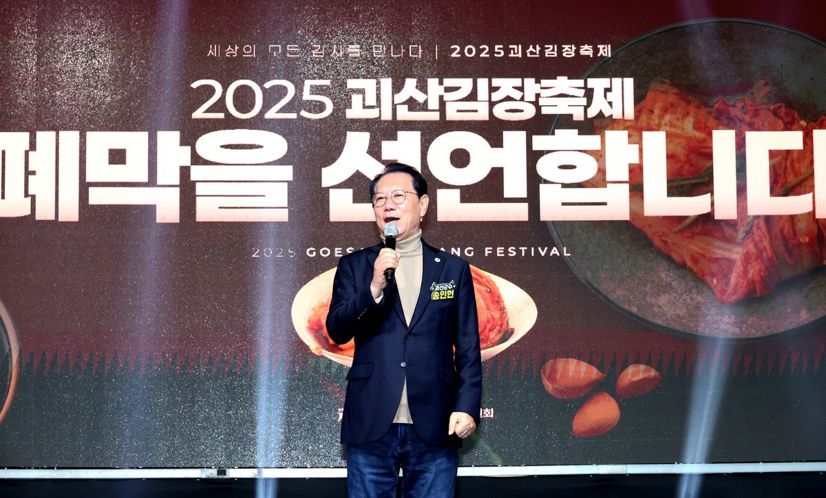 충북 괴산군에서 열린 2025 괴산김장축제가 나흘간의 일정을 마치고 성황리에 폐막했다. 12만 3천여 명의 방문객이 찾았으며, 12억 원의 매출을 기록했다.'세상의 모든 김치, 모닥불 Party'라는 주제로...