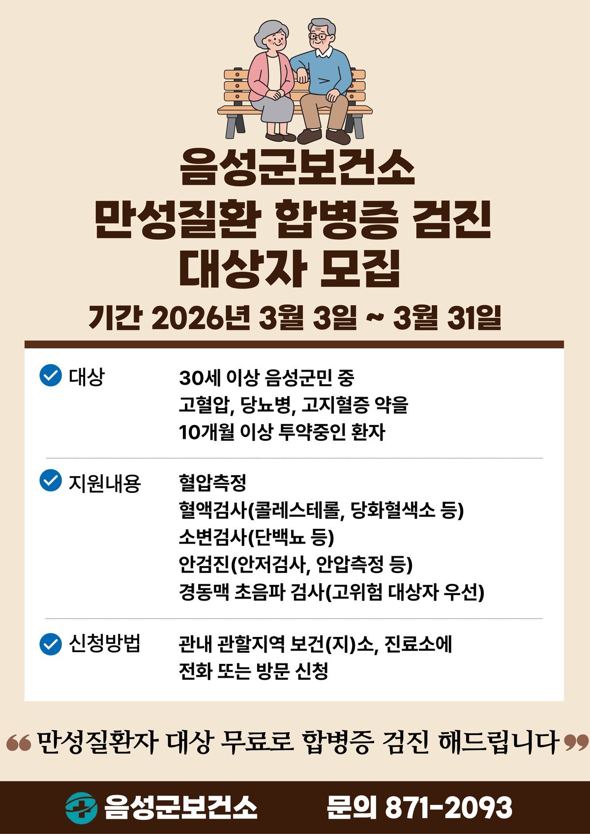 음성군, 만성질환 합병증 무료 검진으로 심뇌혈관질환 예방