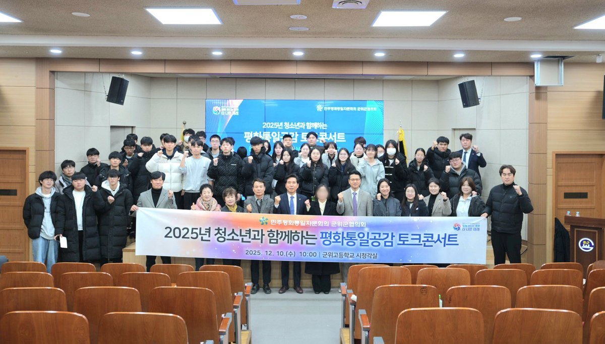 민주평화통일자문회의 군위군협의회가 지난 10일 군위고등학교에서 '청소년과 함께하는 평화통일공감 토크콘서트'를 개최했다.고3 학생들을 대상으로 진행된 이번 행사는 미래세대에게 한반도 평화의 중요성을 알리고 통일에 대한 공감대를 넓히기 위해 마련되었다.강동완 동아대 교수가 '문화로 여는 통일: 북한 MZ 세대의 생각을 듣다'라는 주제로 강연을 진행했다. 탈북 대학생 강경심 씨는 패널로 참여하여 청소년의 시각에서 북한을 이해하고 통일의 필요성과 미래 세대가 준비해야 할 역량에 대해 다양한 의견을 나누었다.학생들은 북한과 남한의 생활 방식 차이, 북한에서 사용되는 언어 등에 대한 이야기를 나누며 높은 관심을 보였다. 자유로운 질의응답 시간에는 북한에 대한 궁금증을 해소하고 구체적인 질문을 쏟아냈다.통일 퀴즈와 '통일 한 줄 생각 짓기' 이벤트도 진행되어 학생들이 평화와 통일의 의미를 쉽고 재미있게 이해할 수 있도록 했다. 신보라 학생은 '통일은 모두가 함께하는 것'이라며 '통일을 하면 남북이 아닌 함께하는 대한민국이 되기 때문'이라고 말했다.전기식 협의회장은 "평화와 통일은 우리 모두가 함께 만들어가야 할 미래"라며 "이번 토크콘서트가 학생들이 평화통일의 필요성을 느끼고 통일의 가치를 스스로 고민하는 계기가 되기를 바란다"고 밝혔다.민주평화통일자문회의는 헌법에 근거한 대통령 직속 통일 자문기구로서, 대한민국의 통일 정책 수립 및 집행에 대한 자문 역할을 수행한다. -