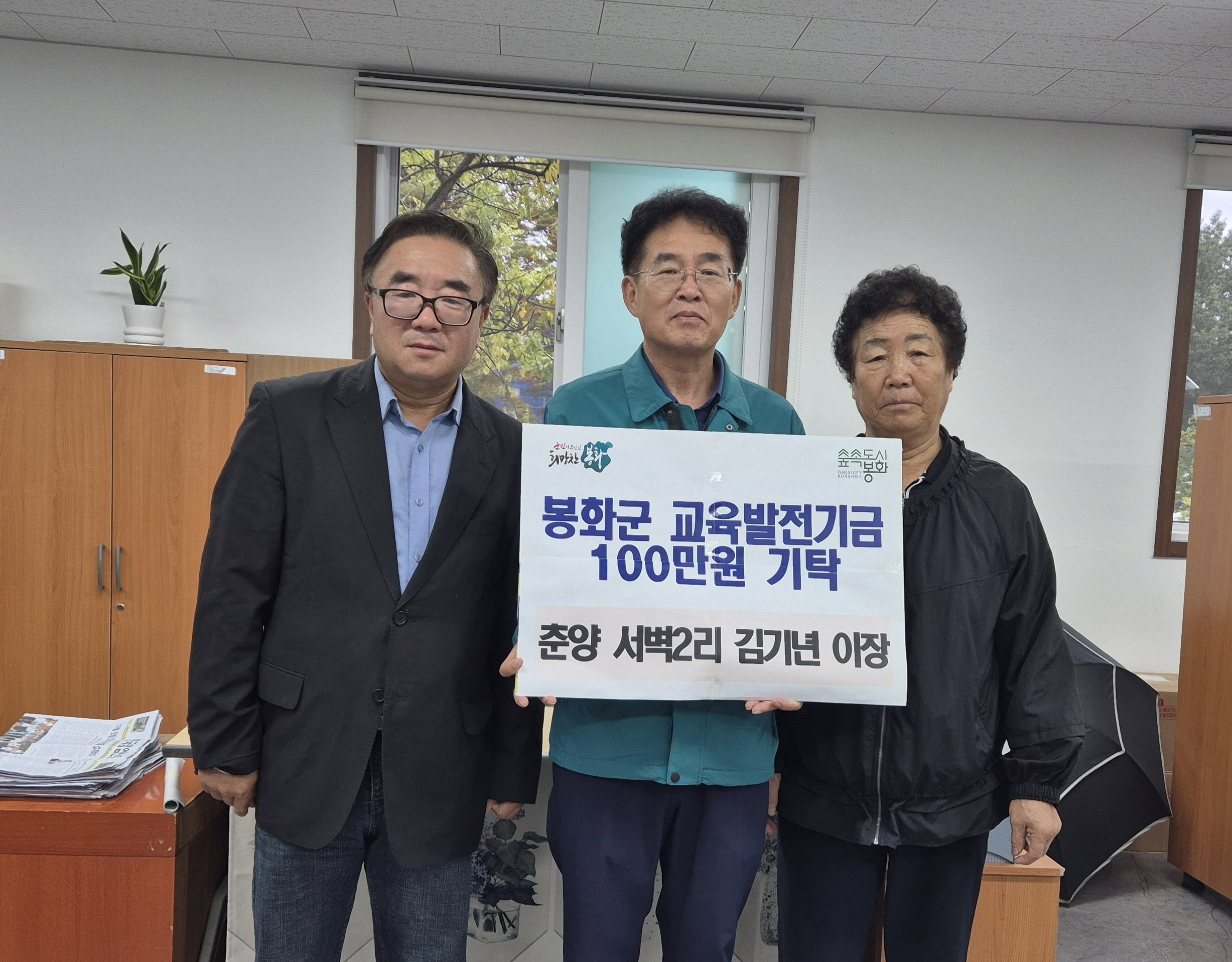 봉화군 교육발전기금에 지역 주민 온정 이어져... 춘양면 이장 100만 원 기탁