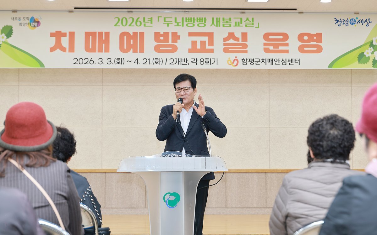 전남 함평군 보건소가 지역 어르신들의 '치매 없는 건강 100세'를 돕고자 치매예방교실을 개강한다.함평군 보건소는 "지난 3일 어르신들의 인지 건강 증진과 신체 활력 향상을 위한 '2026년 치매예방교실'을 개강하고 본격적인 운영을 시작했다"고 4일 밝혔다.매주 화요일 보건소 통합건강관리센터에서 운영되는 '두뇌빵빵 새봄교실'은 60세 이상 군민 100명을 대상으로 하는 인지능력 강화 프로그램이다.인지능력 선별검사에서 정상군으로 분류된 어르신들을 대상으로 치매 예방 실천 교육과 체계적인 인지능력 강화 훈련을 제공한다.프로그램은 치매예방 체조 인지능력 향상 워크북 활동 숟가락 난타 노래교실 요리교실 공예 원예교실 등으로 구성됐다.다양한 신체 정서 사회적 활동을 통해 기억력과 집중력은 물론 실행능력과 문제해결 능력 향상을 위해 기획됐다.매주 수요일 함평실내수영장에서 진행하는 '푸른 뇌-테크 수중 아쿠아로빅 운동교실'은 60세 이상 군민 30명을 대상으로 1시간씩 운영한다.프로그램은 참여자들의 수중 활동을 통해 관절 부담을 줄이면서 근력과 심폐지구력을 강화하고 혈액순환 개선을 통한 두뇌 활성화와 인지 기능 유지에 도움을 줄 것으로 기대된다.두 교실 모두 운영 전 주관적 기억감퇴 평가, 단축형 노인 우울척도 검사, 치매 선별검사 등이 선행된다.종료 후에는 만족도 조사와 교육 전 후 비교 분석을 통해 사업 효과를 체계적으로 평가할 계획이다.함평군 관계자는 "인지능력 강화 프로그램과 수중 운동 프로그램을 병행해 어르신들의 치매 예방은 물론 신체 건강 증진, 사회적 교류 확대, 노년기 우울 예방까지 종합적으로 지원할 것"이라며 "앞으로도 다양한 건강증진 사업을 제공해 군민 삶의 질 향상에 최선을 다하겠다"고 말했다.한편 함평군 치매안심센터는 올해도 치매 조기검진 치매검사비 치료관리비 지원 치매환자 쉼터 프로그램 운영 등 다양한 치매 관리사업을 추진해 어르신들의 '치매 없는 건강 100세'를 도울 계획이다.