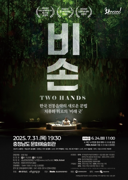 충남문화관광재단 서흥식 대표이사는 “‘2025–2026 충남방문의 해’를 맞아 충청남도 문화예술회관을 찾은 많은 분들이 전통과 기술의 만남을 선보이는 ‘비손’ 공연을 통해 ‘문화로 행복한 충남’을 경험하시기 바란다”고 밝혔다.