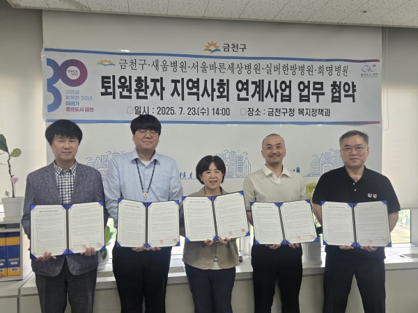 [PEDIEN] 금천구는 지난 23일 금천구청에서 관내 의료기관 새움병원, 서울바른세상병원, 실버한방병원, 희명병원과 ‘퇴원환자 지역사회 연계사업’ 업무협약을 체결했다고 밝혔다.