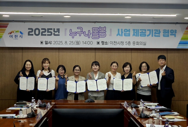 [PEDIEN] 이천시는 8월 25일 시청 5층 중회의실에서 ‘2025년 누구나 돌봄 신규 제공기관 협약식’을 개최하고 지역사회 돌봄체계 강화를 위한 새로운 협력 기반을 마련했다.