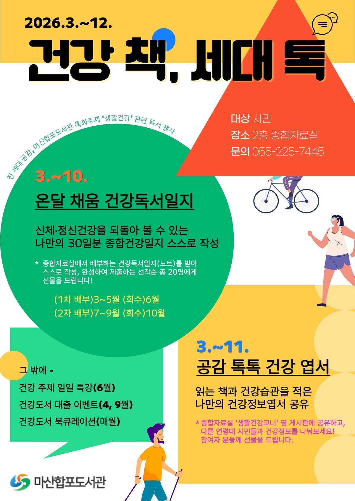 이 외에도 도서관은 대출 이벤트, 건강 주제 특강, 건강 도서 북큐레이션 등 다양한 프로그램을 통해 시민들의 건강한 독서 생활을 지원할 계획이다.