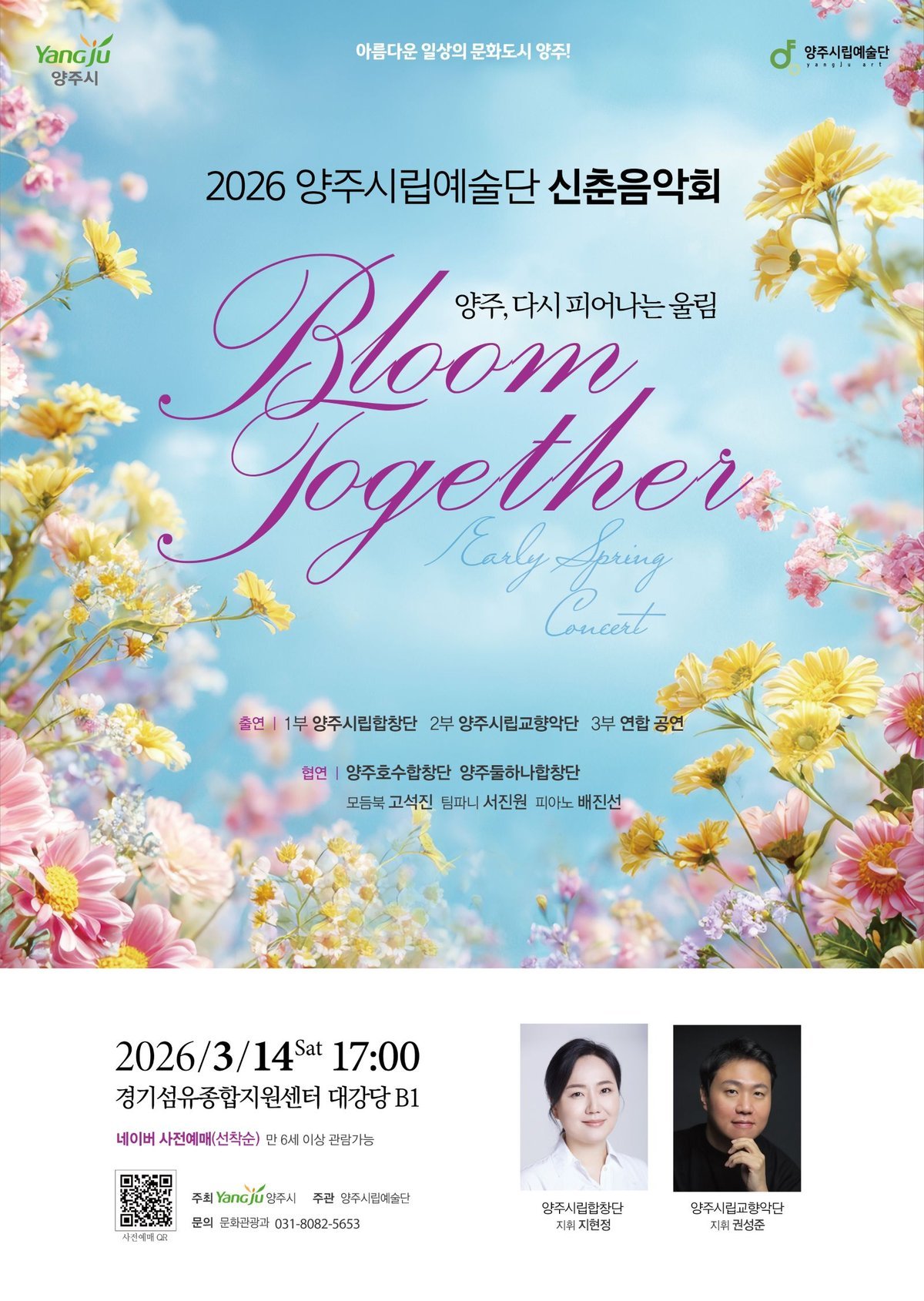 양주시 관계자는 "이번 신춘음악회는 전문 예술단과 시민이 함께 만들어가는 의미 있는 무대가 될 것"이라며 "시민들의 목소리가 어우러진 아름다운 하모니로 봄의 희망을 전하는 공연이 될 것으로 기대한다"고 말했다.