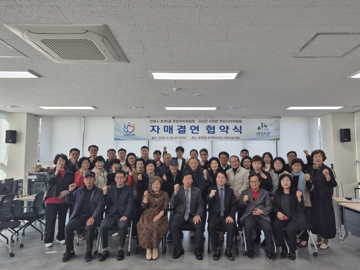 [PEDIEN] 안양시 동안구 호계1동이 충북 괴산군 사리면과 손을 잡았다. 호계1동 주민자치위원회는 지난 25일, 사리면 주민자치위원회와 자매결연 협약을 체결하며 도농 교류 활성화에 나섰다.