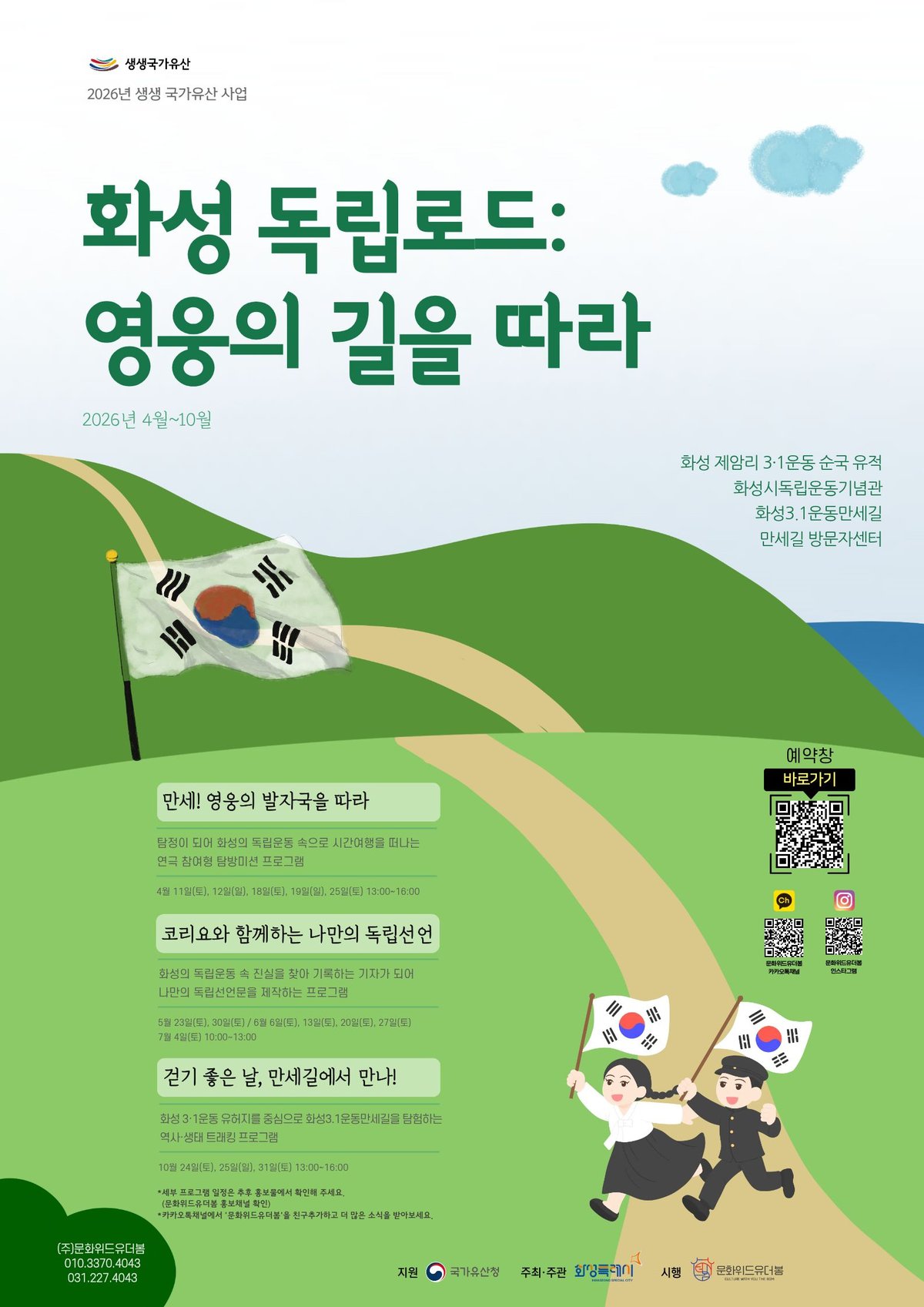 [PEDIEN] 화성시가 4월부터 10월까지 제암리 3.1운동 순국 유적지와 3.1운동 만세길 일대에서 특별한 체험 프로그램을 운영한다. '2026 우리고장 국가유산 활용사업' 공모에 선정된 덕분이다.