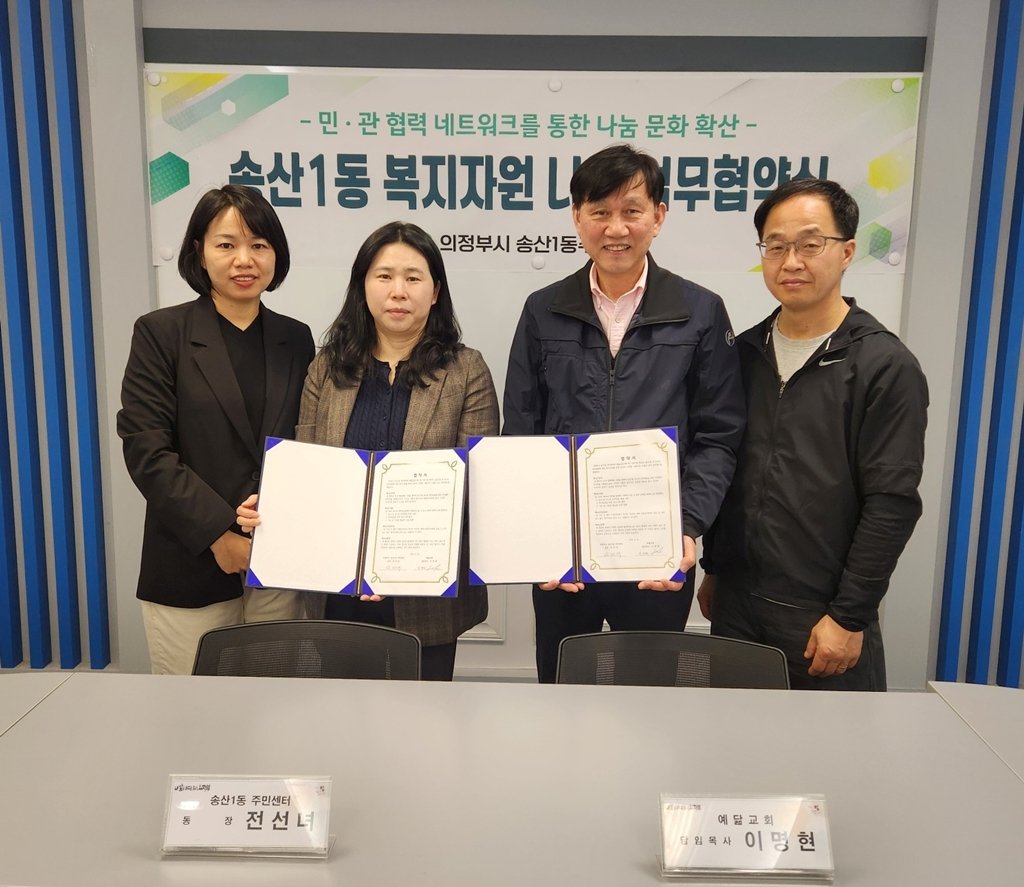 [PEDIEN] 의정부시 송산1동이 예닮교회와 손을 잡고 지역 내 취약계층 지원을 위한 따뜻한 동행을 시작했다. 지난 3월 26일 송산1동주민센터는 예닮교회와 복지 자원 나눔 협약을 체결하며 민관 협력의 새로운 장을 열었다.