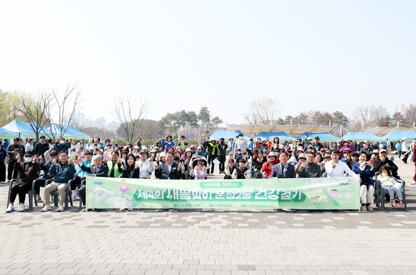 [PEDIEN] 파주시 운정2동이 운정건강공원에서 '새봄맞이 건강걷기' 행사를 성황리에 마쳤다. 600명이 넘는 주민이 참여하여 성황을 이뤘다.