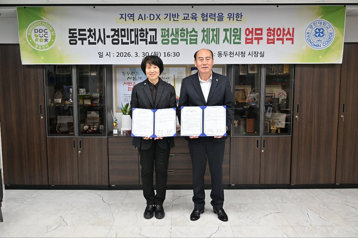 [PEDIEN] 동두천시는 지난 30일 시청 시장실에서 경민대학교와 'AI 기반 평생학습 활성화를 위한 업무협약'을 체결했다고 밝혔다.