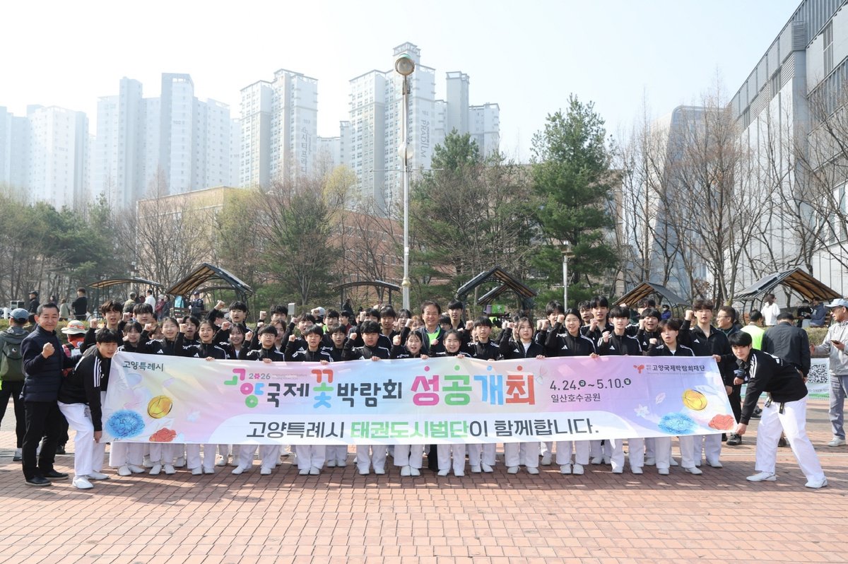 이날 시범단은 절도 있는 품새와 박력 넘치는 격파 시연으로 걷기대회 참가자들의 시선을 사로잡았다. 특히 2026 고양국제꽃박람회 홍보를 병행하며 고양시의 매력을 적극적으로 알렸다.