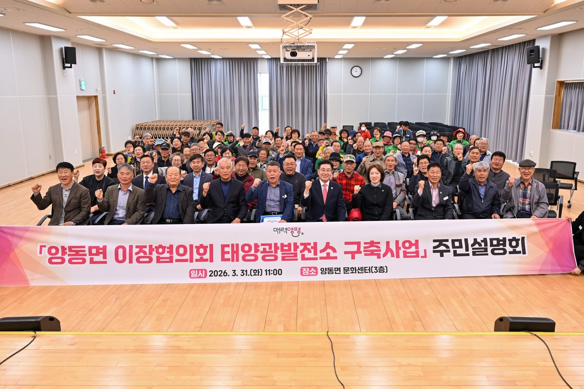 [PEDIEN] 양평군이 전국 최초로 시도하는 면 단위 태양광 발전소 구축 사업 설명회를 성공적으로 마쳤다. 양동면 이장협의회가 주도하는 이번 사업은 지난 3월 31일 양동면 문화센터에서 주민들의 뜨거운 관심 속에 진행됐다.